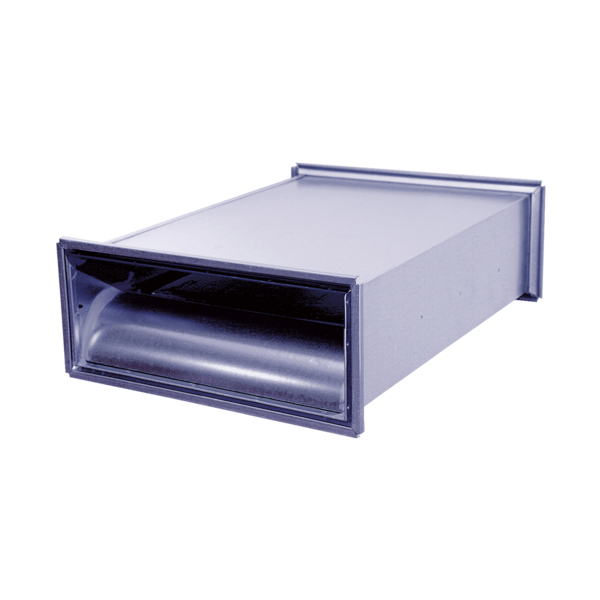 Rektangulær lyddæmper med cirkulær tilslutning